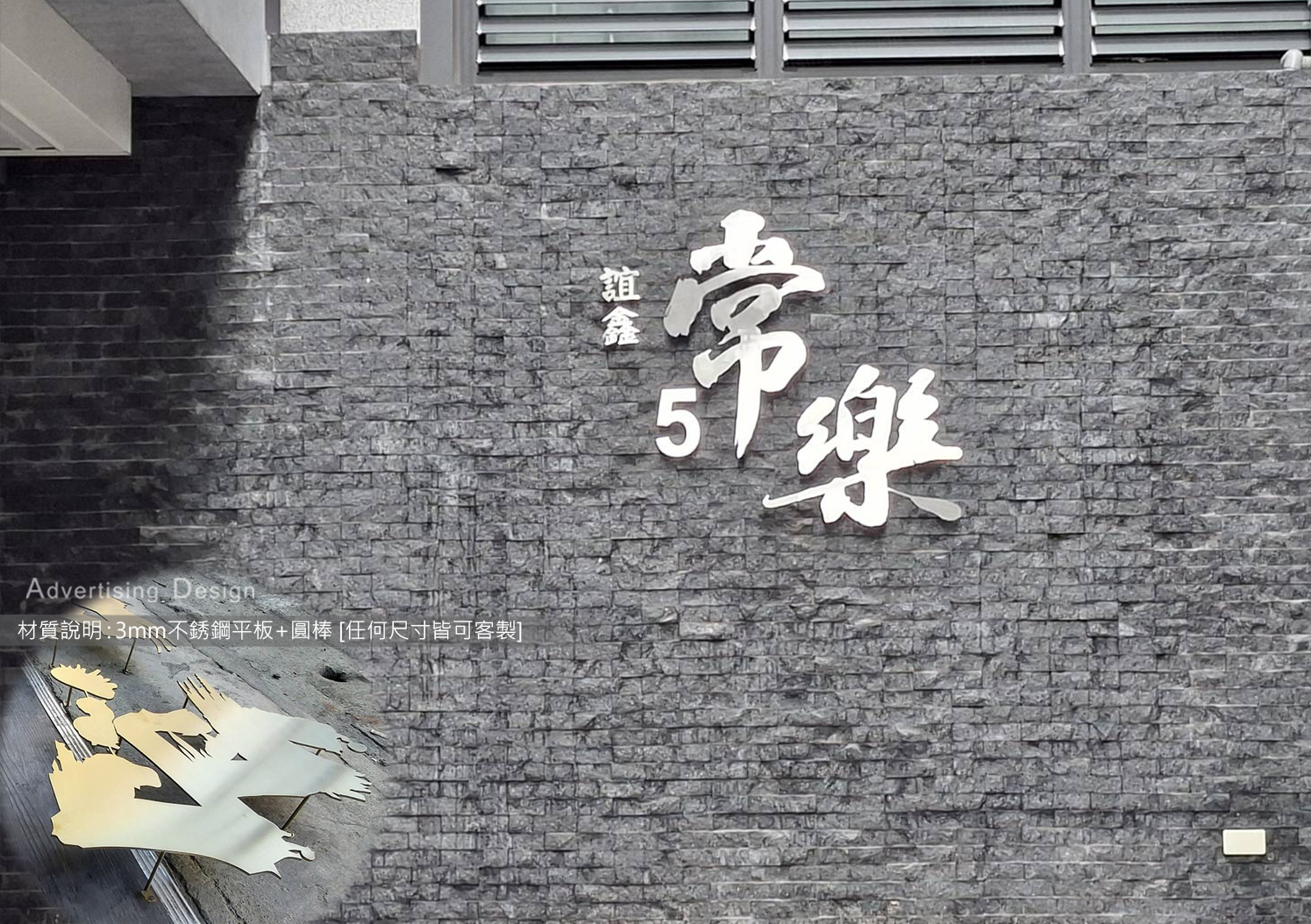 旭誼工程[不銹鋼亮面雷雕+水晶字]