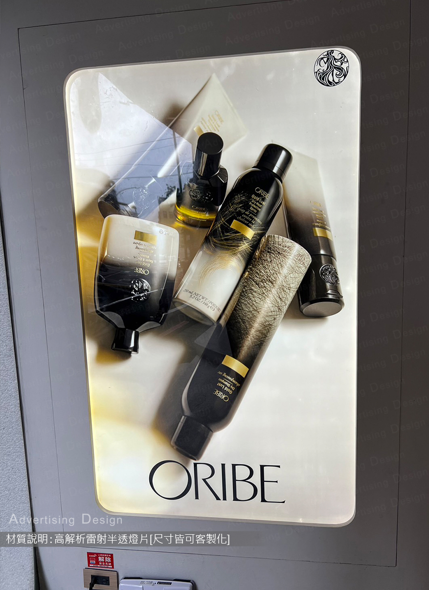 高解析雷射燈片,一般來說透光布寬幅為五尺,但此燈箱尺寸超過五呎,為求視覺整體無接縫的美觀,使用特殊超大寬幅材料輸出,並以倒鉤方式扣裝在裝潢內部,整體外觀無框也無接縫,收邊俐落做法特殊,與一般製作方式大不相同。