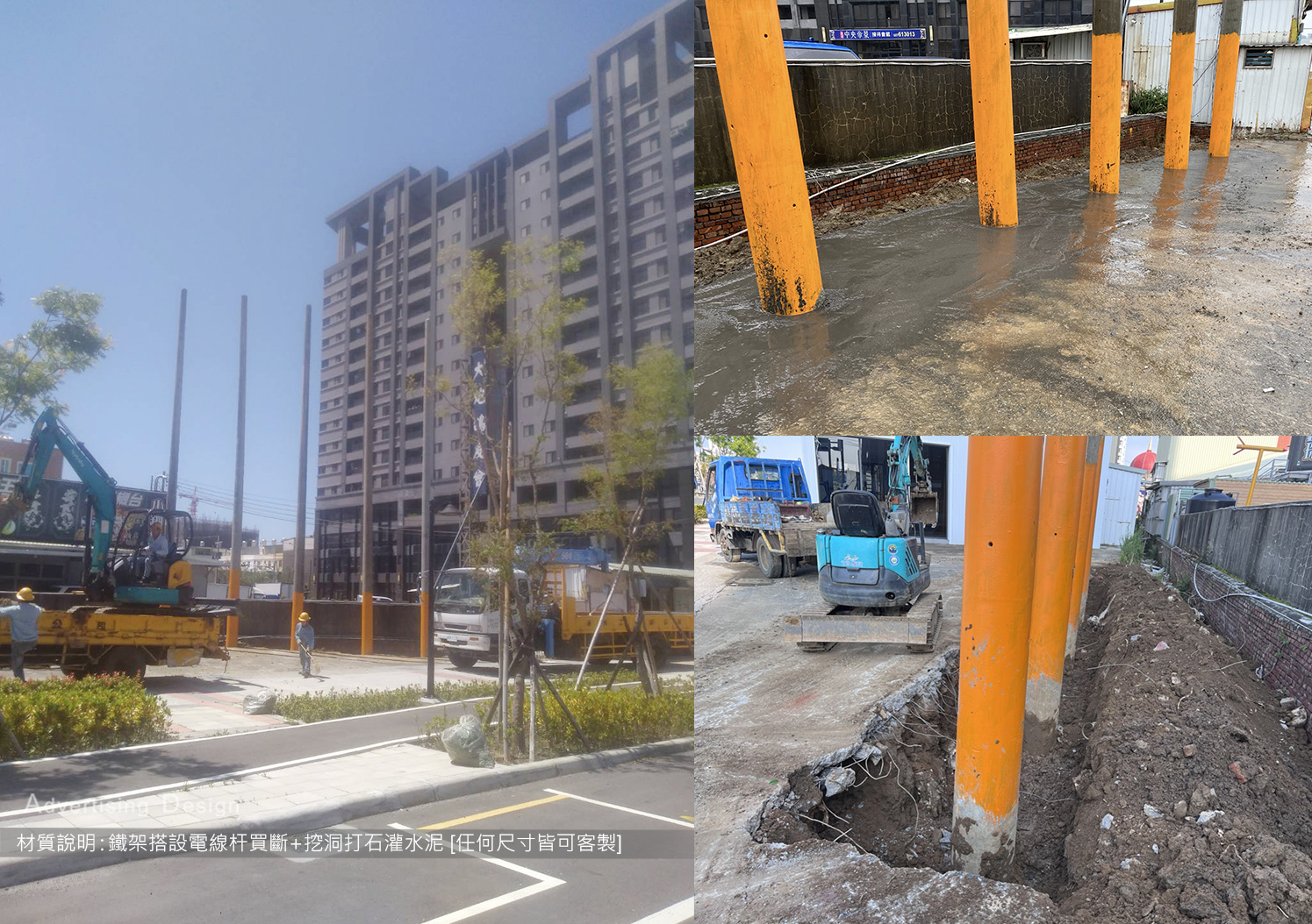 鐵架搭設電線杆買斷+挖洞打石灌水泥